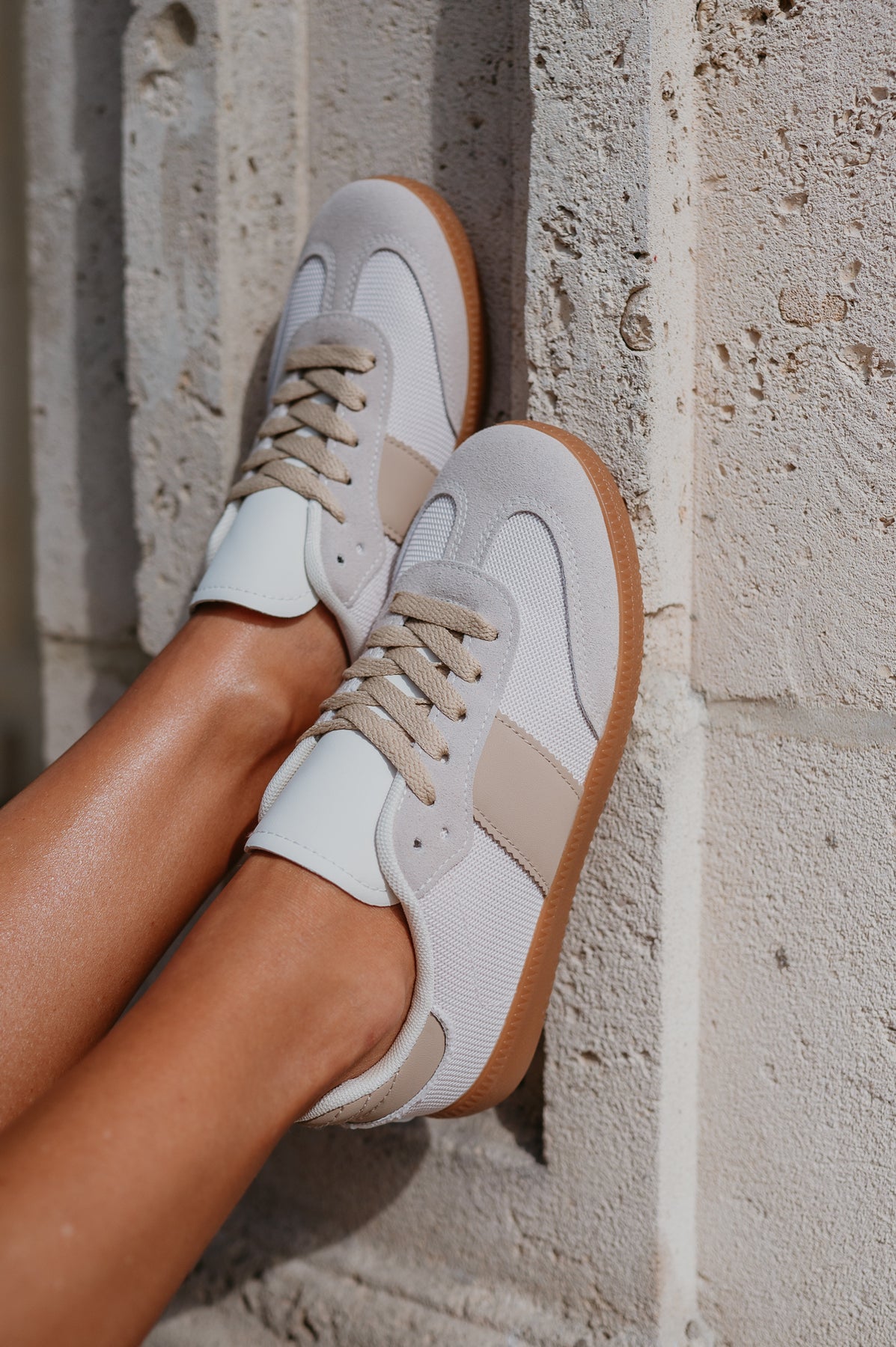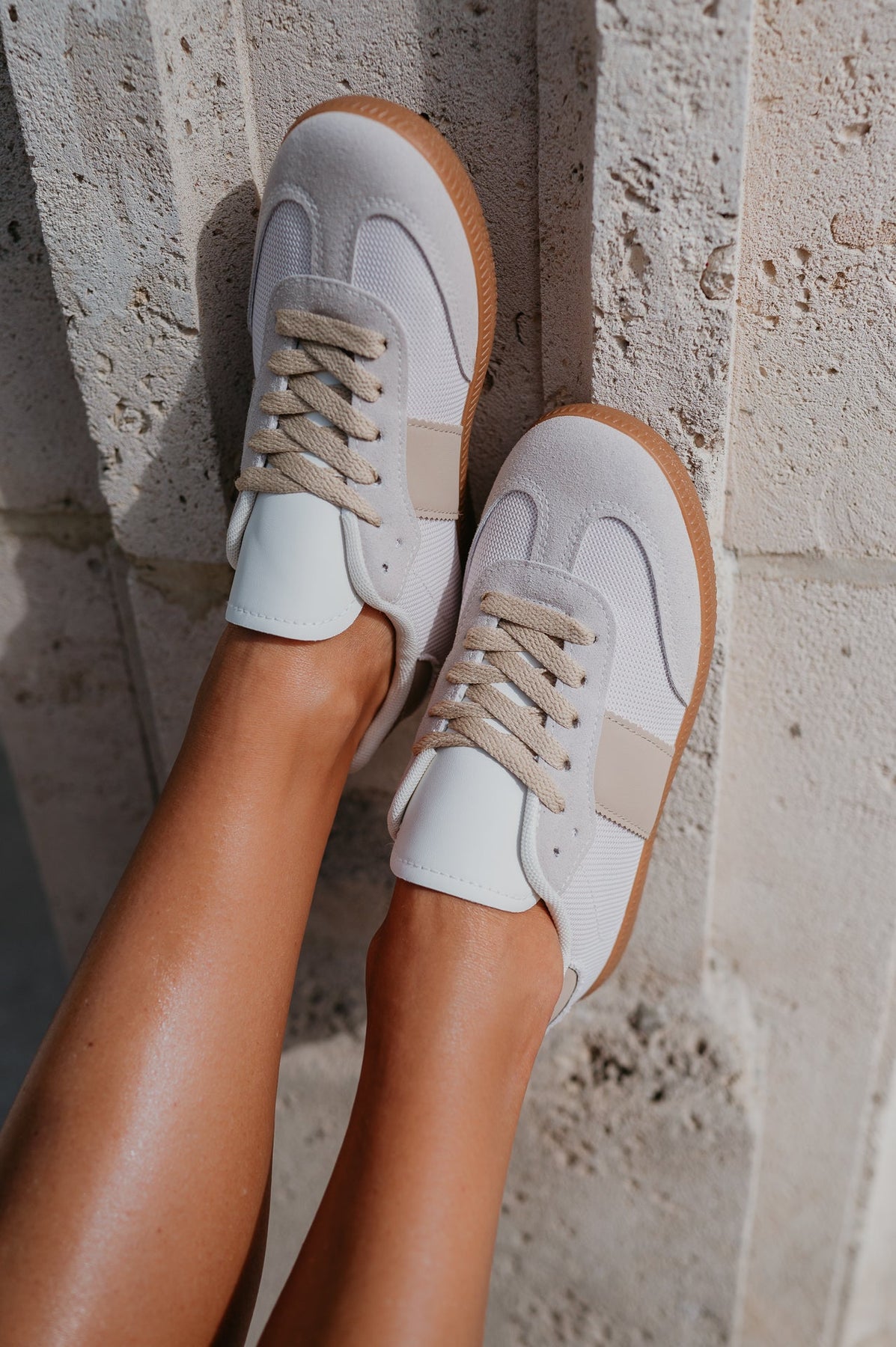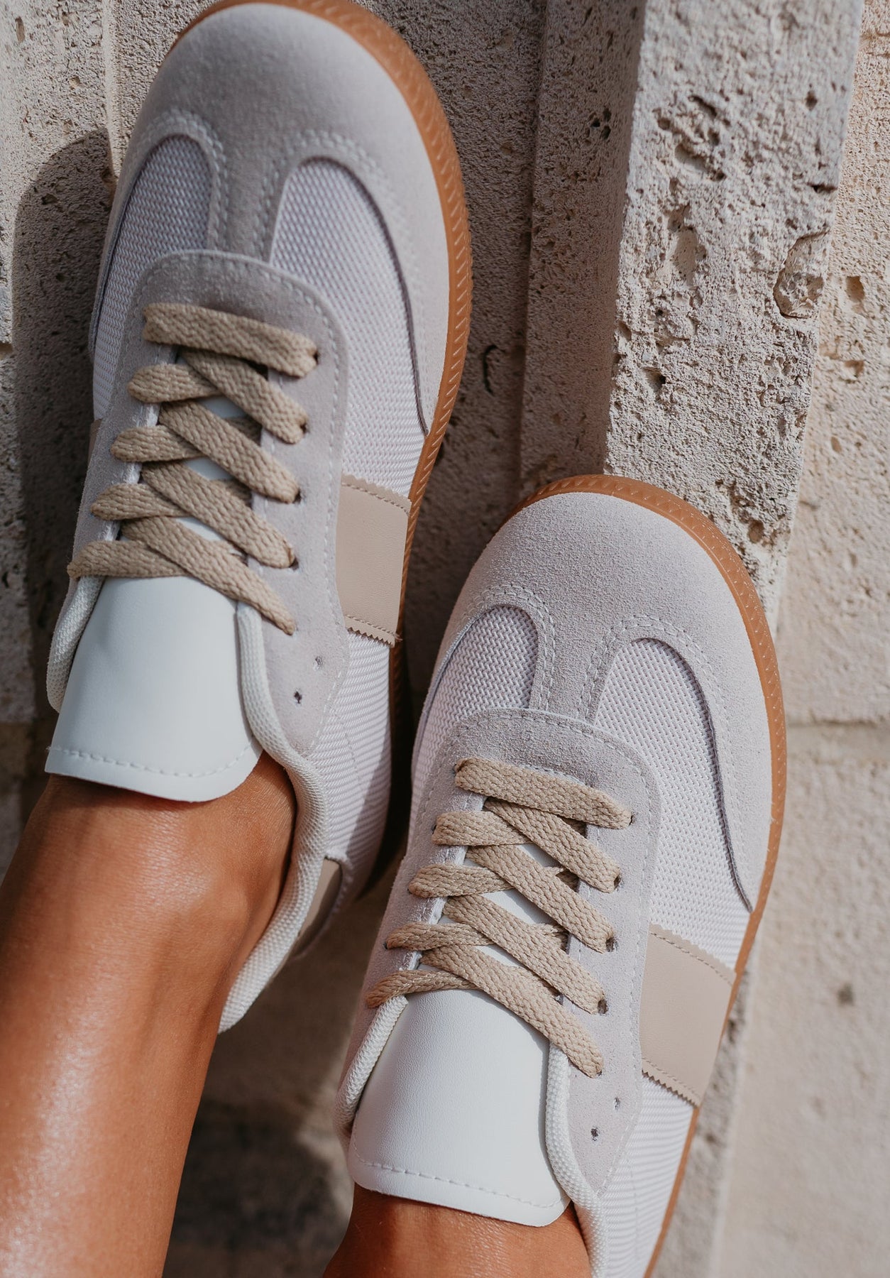 Beige, simpele sneakers die moeiteloos te combineren zijn met elke outfit.