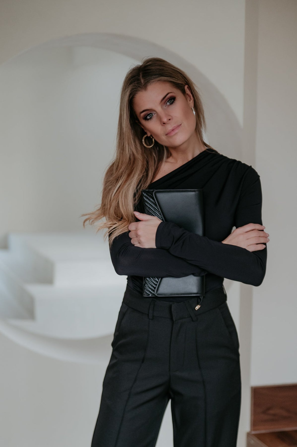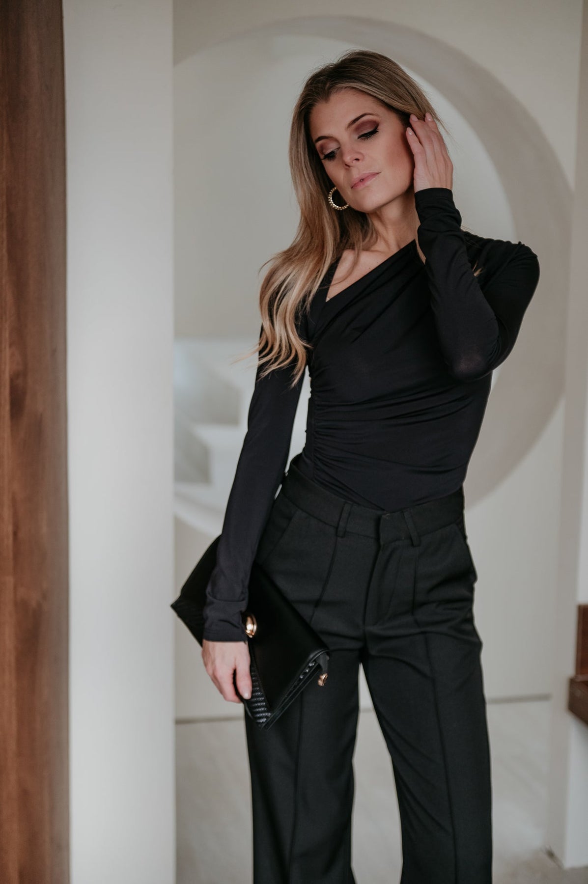 Deze prachtige top heeft een mooi detail aan de hals, wat hem meteen een super stijlvolle en chique uitstraling geeft.