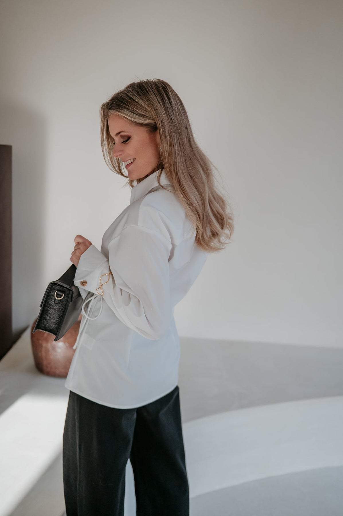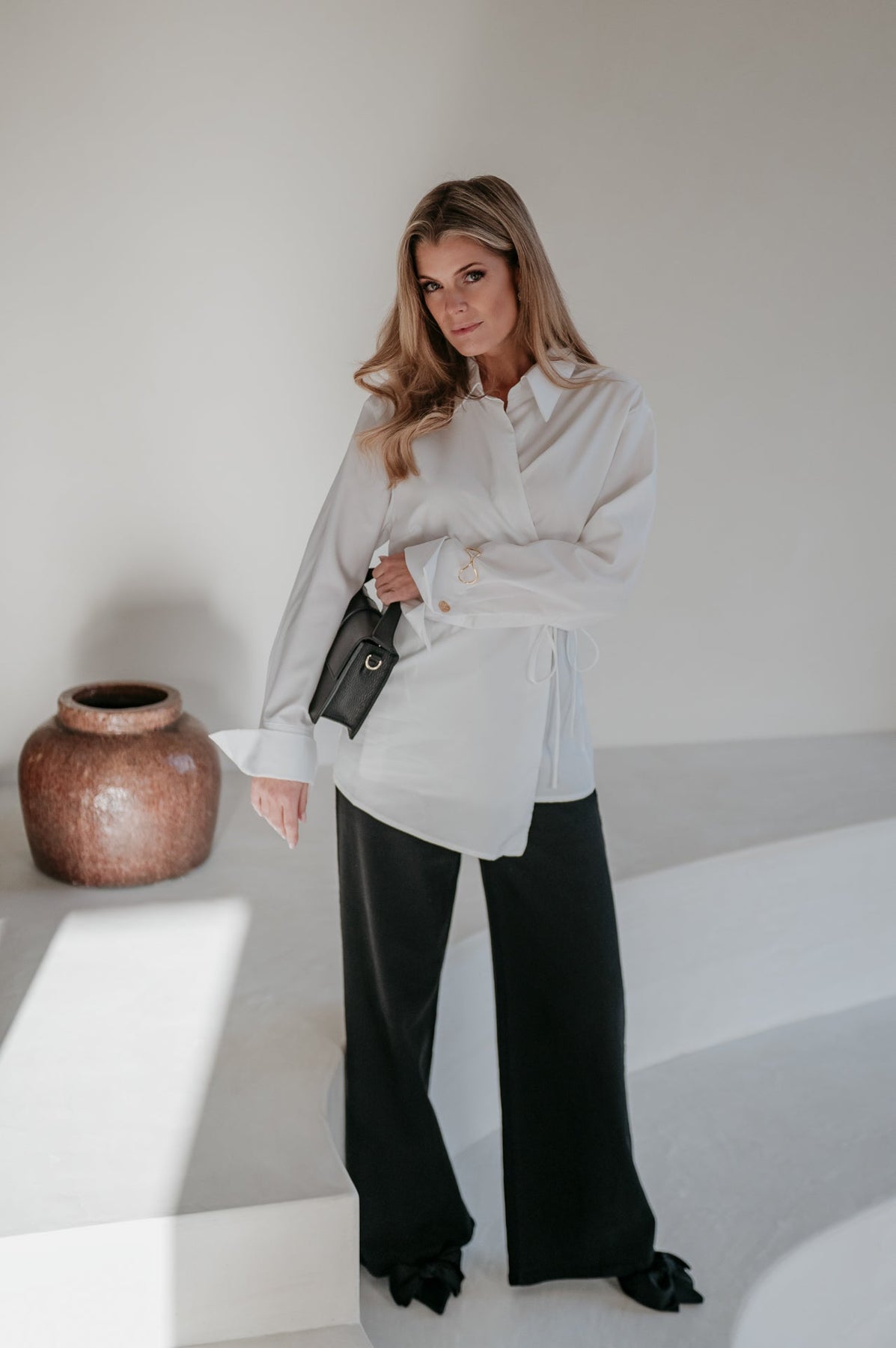 Je kan hem vooraan knopen zodat hij mooi aansluit in de taille, wat meteen een flatterend en gestileerd effect geeft.
