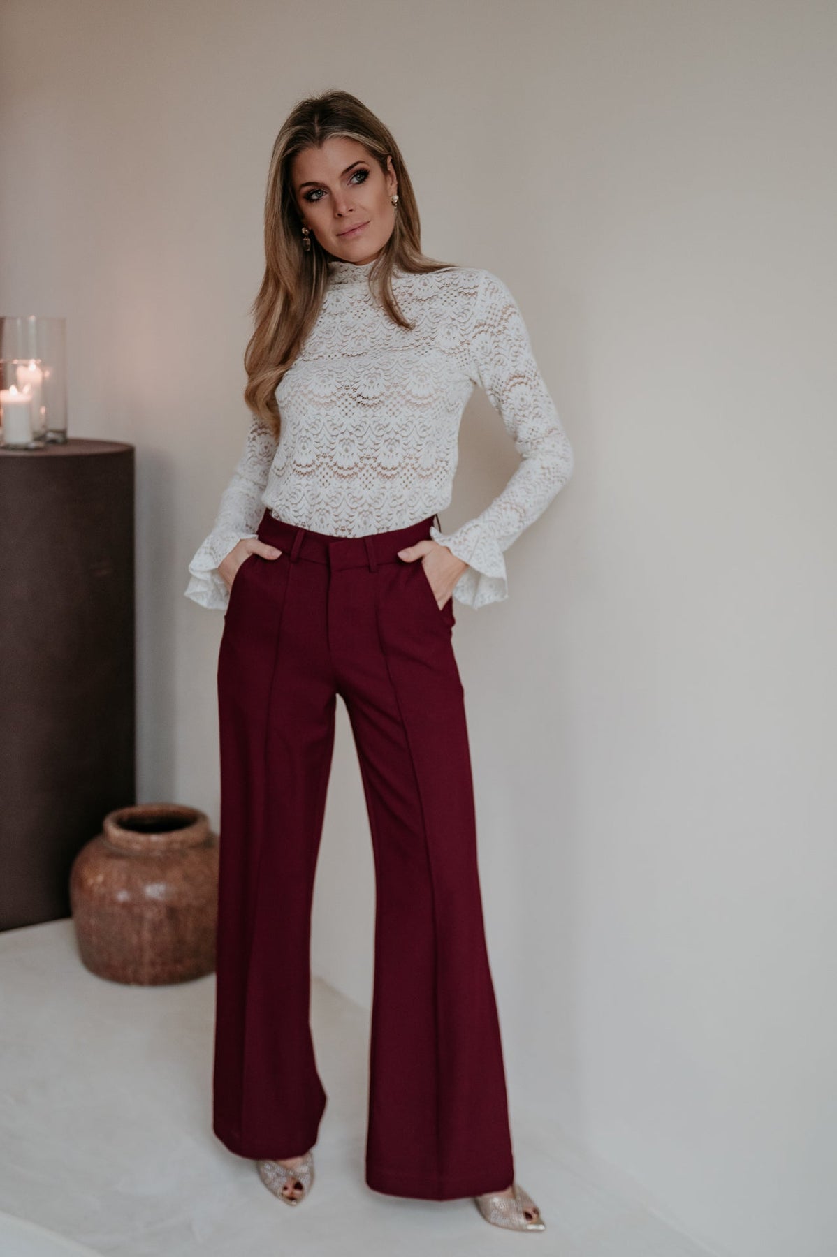 Het delicate kant maakt het elegant en vrouwelijk, terwijl de wijde mouwen een speels effect geven.