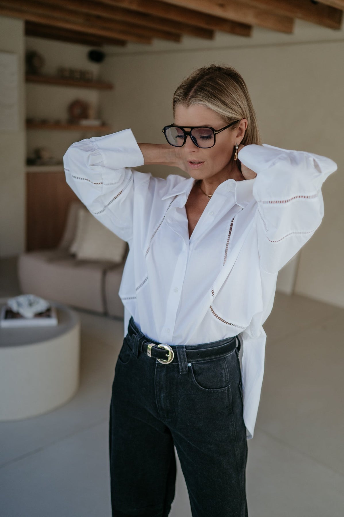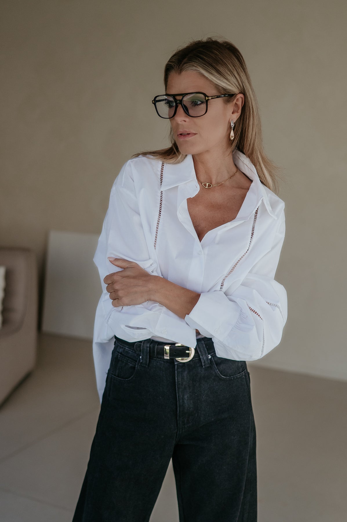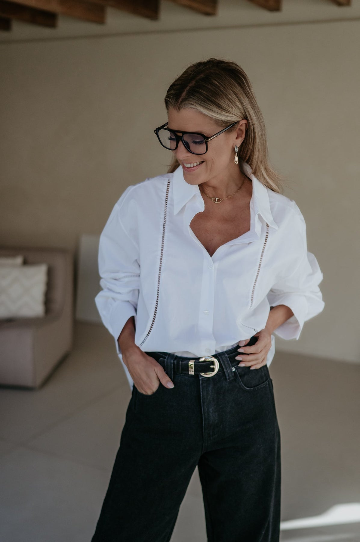 Prachtig wit hemd, ideale basic maar heet toch mooie details.
